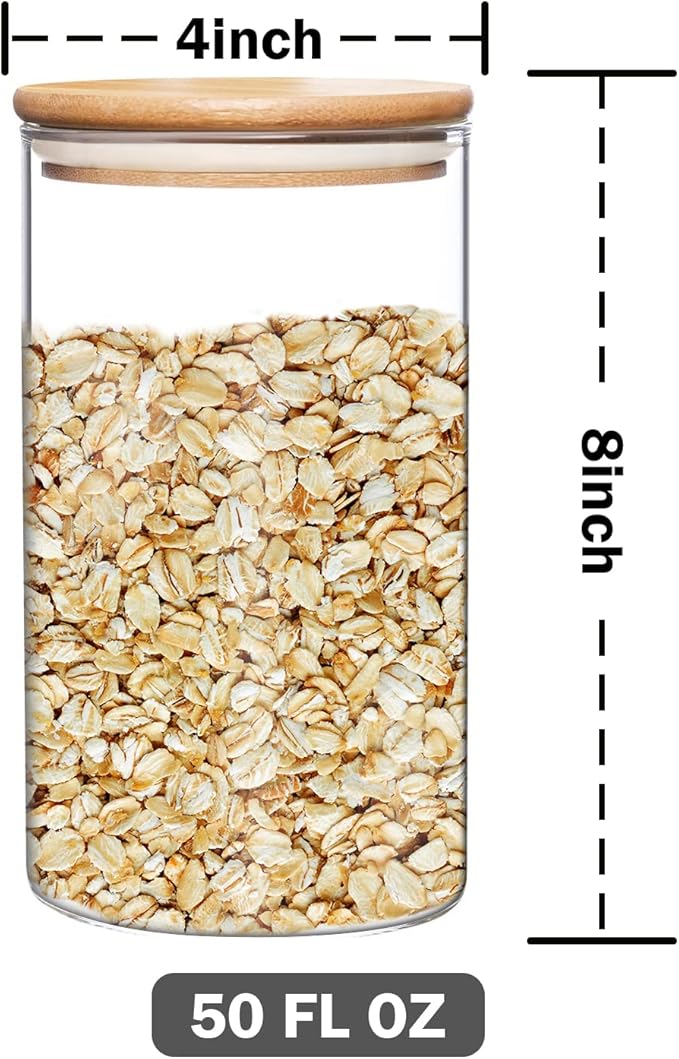 - Airtight Bamboo Lid: This glass storage containers with lids is equipped with food-grade silicone sealing ring and the tight with the mouth, glass cereal containers storage it is more airtight to keep the food fresh and dry.