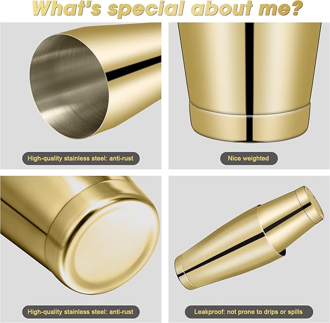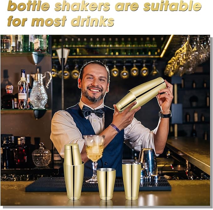 Lallisa 10 Pieces Cocktail Shakers Professional Bar Boston Shaker Set Stainless Steel Martini Shaker Drink Mixer Basic Tools Weighted Shake Metal Can for Bartenders, 18 Oz, 28 oz(Gold)