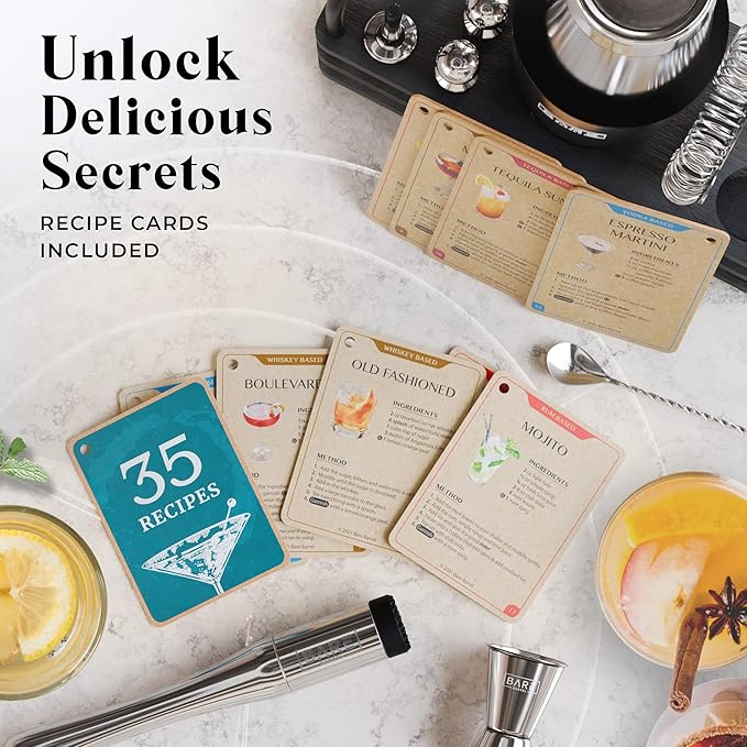 - ✔ ENDLESS TASTY RECIPES » Includes 35 recipe cards, so whether you fancy the taste of whiskey, vodka, rum, gin or tequila, you're covered! Enjoy an Old Fashioned, Margarita, Martini, Mojito...