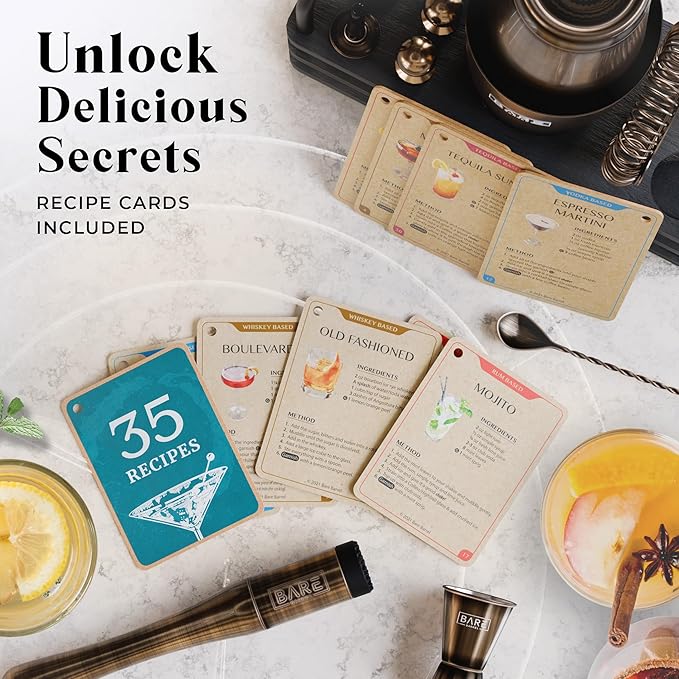 - ✔ ENDLESS TASTY RECIPES » Includes 35 recipe cards, so whether you fancy the taste of whiskey, vodka, rum, gin or tequila, you're covered! Enjoy an Old Fashioned, Margarita, Martini, Mojito...