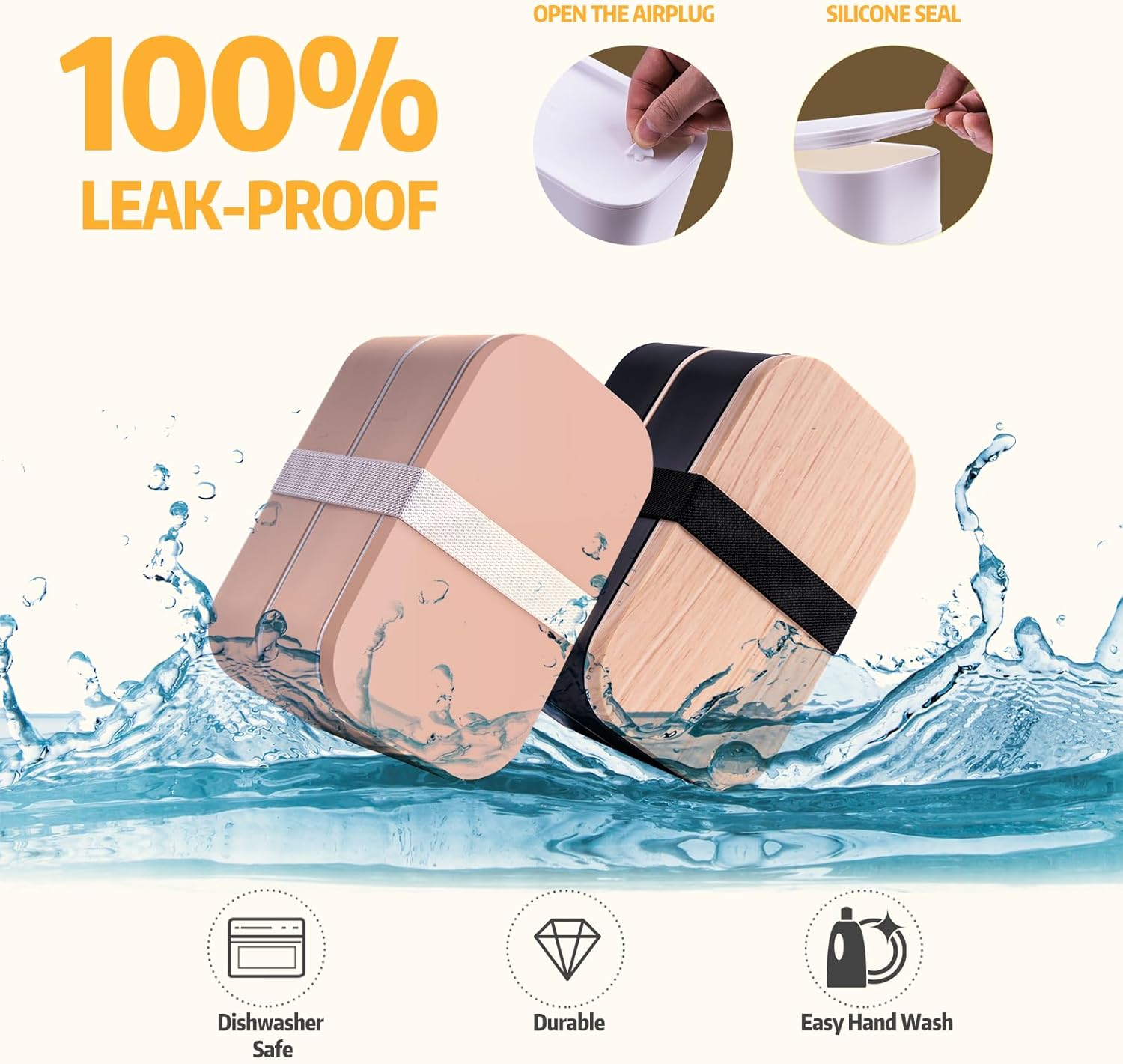 - 【Stackable Bento Box】With its spacious compartments that can hold up to 60oz, is perfect for a wide range of lunchtime options, including sandwiches, salads, fruits, and more.Making it a perfect option for busy professionals alike.