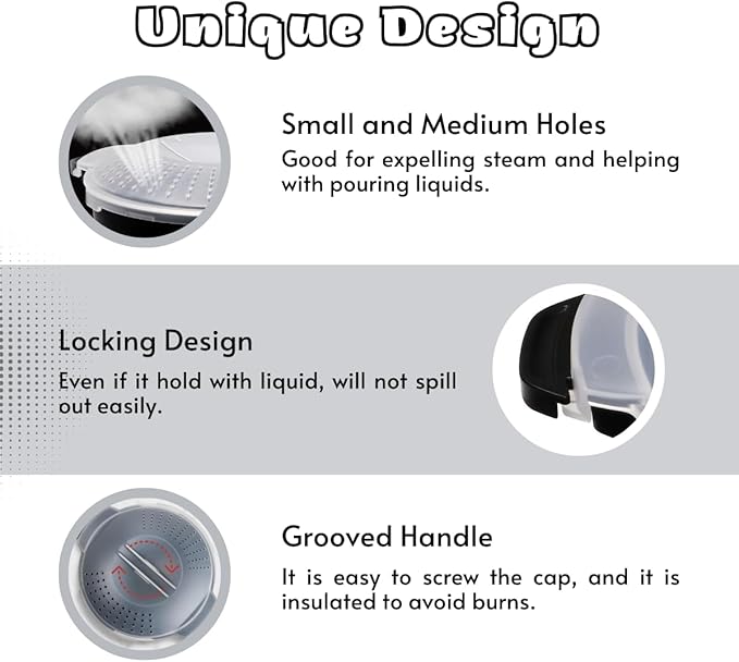 - [Unique Design] - The capacity of 2 Quarts is the perfect size for family meals. The inner walls of both sides are respectively marked with scales for easy measurement. The lid of our microwave steamer has a locking design, even if it holds liquid, will not spill out easily. And with the grooved handle, it's easy to screw the lid, and it is insulated to avoid burns. The Locking lid of the microwave veggie steamer has small and medium holes, which can ensure that the humidity in the cooker is mo
