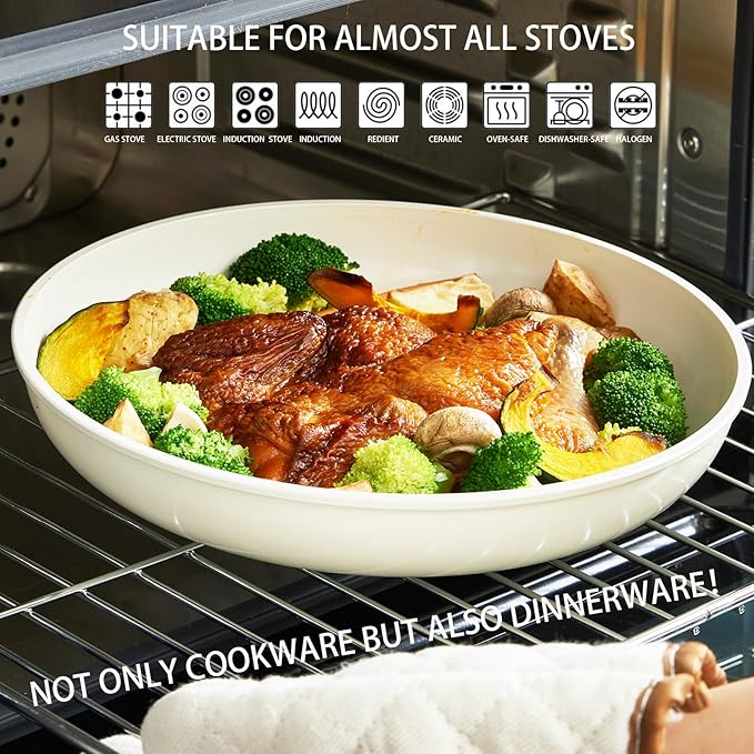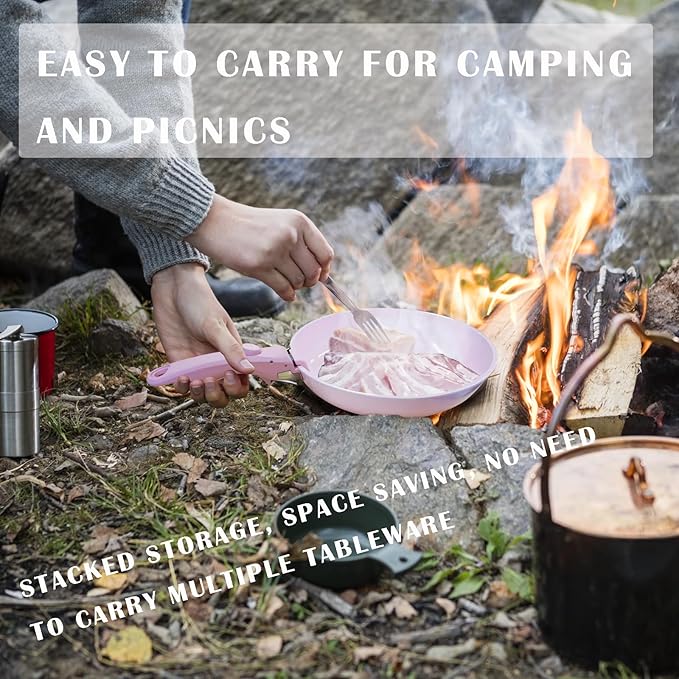 - Set includes: 1x 8-inch frying pan, 1x 10-inch frying pan, 1x 2.5QT saucepan, 1x detachable handle, 1x lid (suitable for 8-inch frying pans and saucepan)