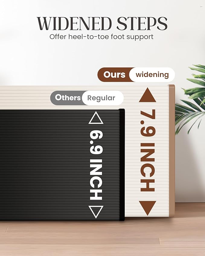 - ANTI-SLIP AND WIDE PEDAl STEP STOOL: To ensure maximum safety during operation, the size of thickened pedal is 7.9"W*12.6"L. The surface of the paddle has prominent lines to prevent slipping.