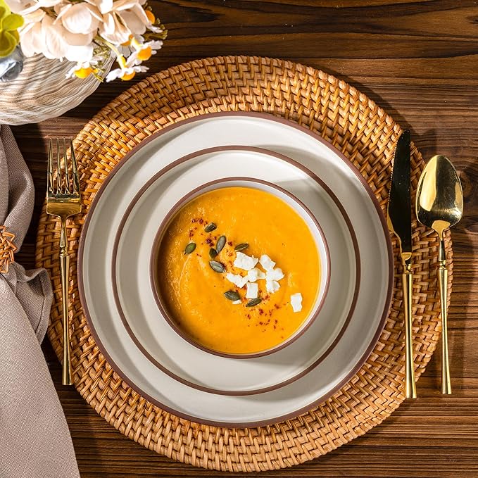 - 【LEAD FREE EAT SAFTY】Our plates and bowls set is made of druable material and features an all-natural glaze that is lead-free, cadmium-free. The set is fired at a high temperature of 2340℉ for 17 hours to ensure its durability and safety. With this dinnerware set, you'll never have to worry about any health problems.