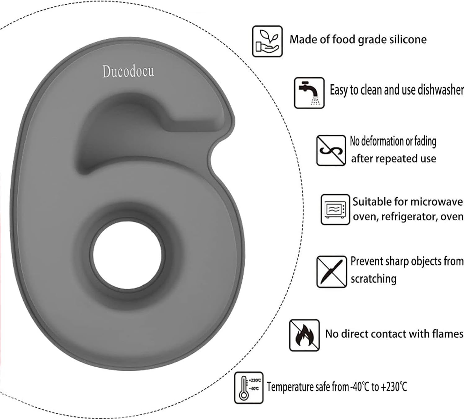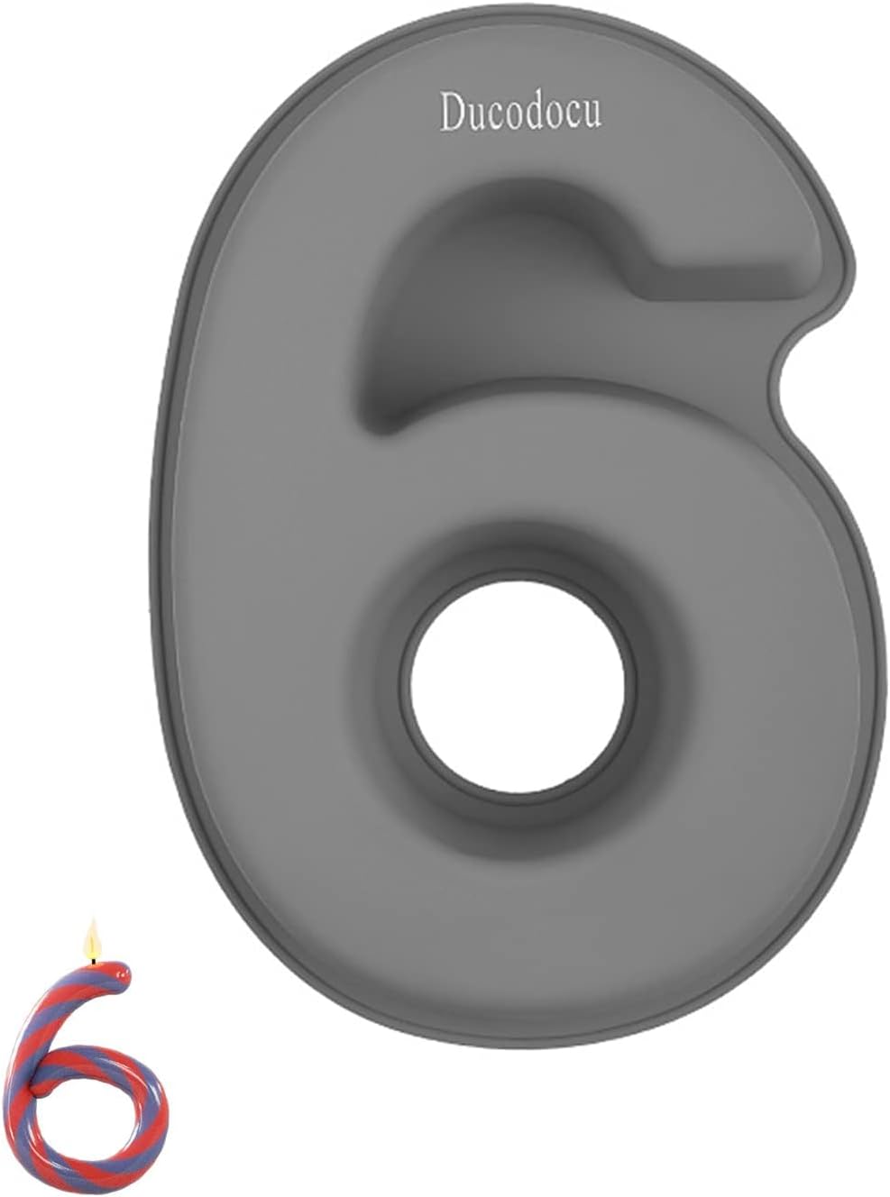 Ducodocu 3D Silicone Cake Pans Large Number Cake Mould Novelty Cake Tins DIY Baking Mold for Birthday Wedding Anniversary 10 inch Number of 6