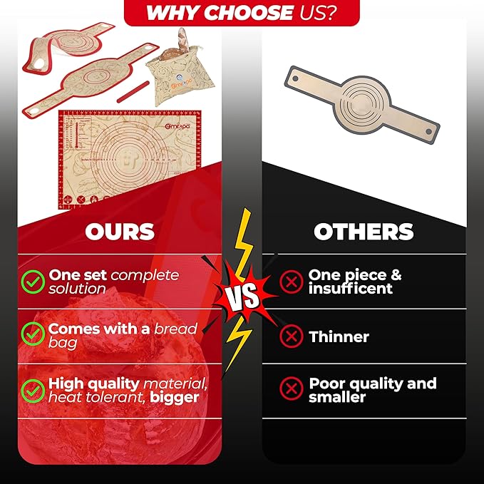- **SPECIAL DESIGN** - Elevate your culinary art with our specially designed silicone baking mat, featuring dough and bakery products imagery. The vibrant red color adds a stylish touch to your kitchen décor, perfect for dutch oven for bread baking.