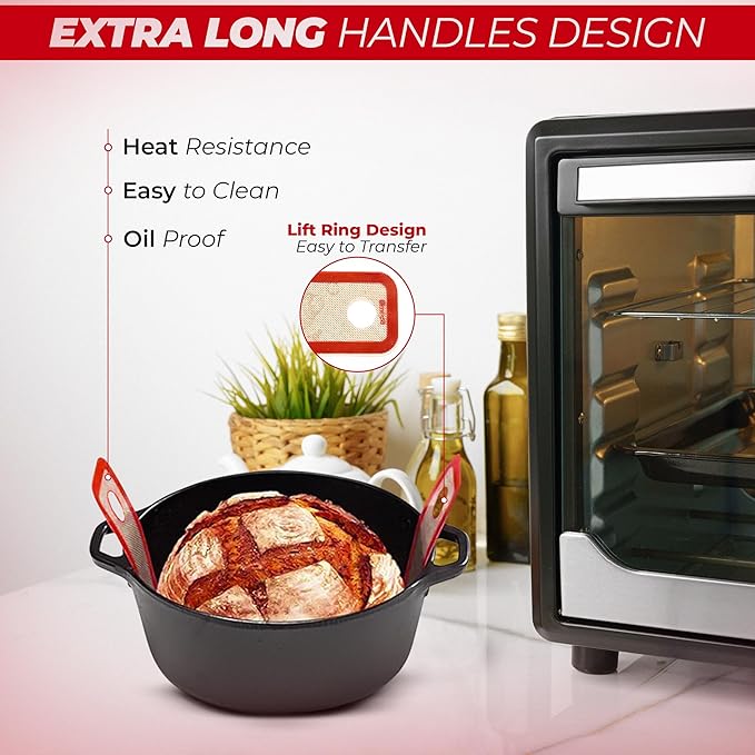 - **HIGH TEMPERATURE RESISTANT SILICONE** - Durable bread sling dutch oven silicone 500 degrees °F (260°C), this silicone mat is ideal for frequent baking tasks. As a key part of your sourdough silicone bread sling, it will become an indispensable assistant in the kitchen.