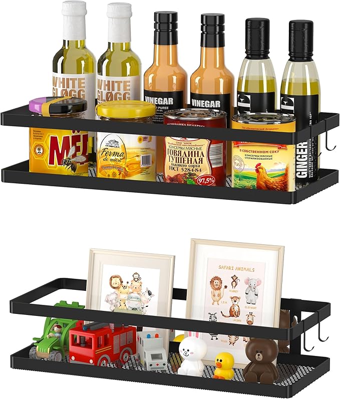- 【MULTI-PURPOSE&MULTIFUNCTIONAL】The perfect solution for organizing a multitude of every items indoor or outdoor. The cabinet organizer hanging baskets wall mount is Ideal for organizing and storing spice bottles, pantry items, snacks, toiletries, tools, craft supplies,etc. And this metal bin basket free up enough space for your homes, kitchen, living room, bathroom, camper, farmhouse, apartments, college dorm rooms, etc.
