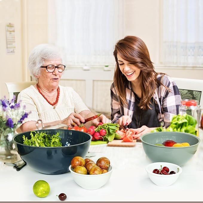 - 🍓【Stackable & Easy to Clean】: These nesting mixing bowls for kitchen can be stacked on top of each other to save space. The plastic bowls with lids are top-rack dishwasher friendly and can also be hand washed with soap and water (avoid the use of abrasive sponges).