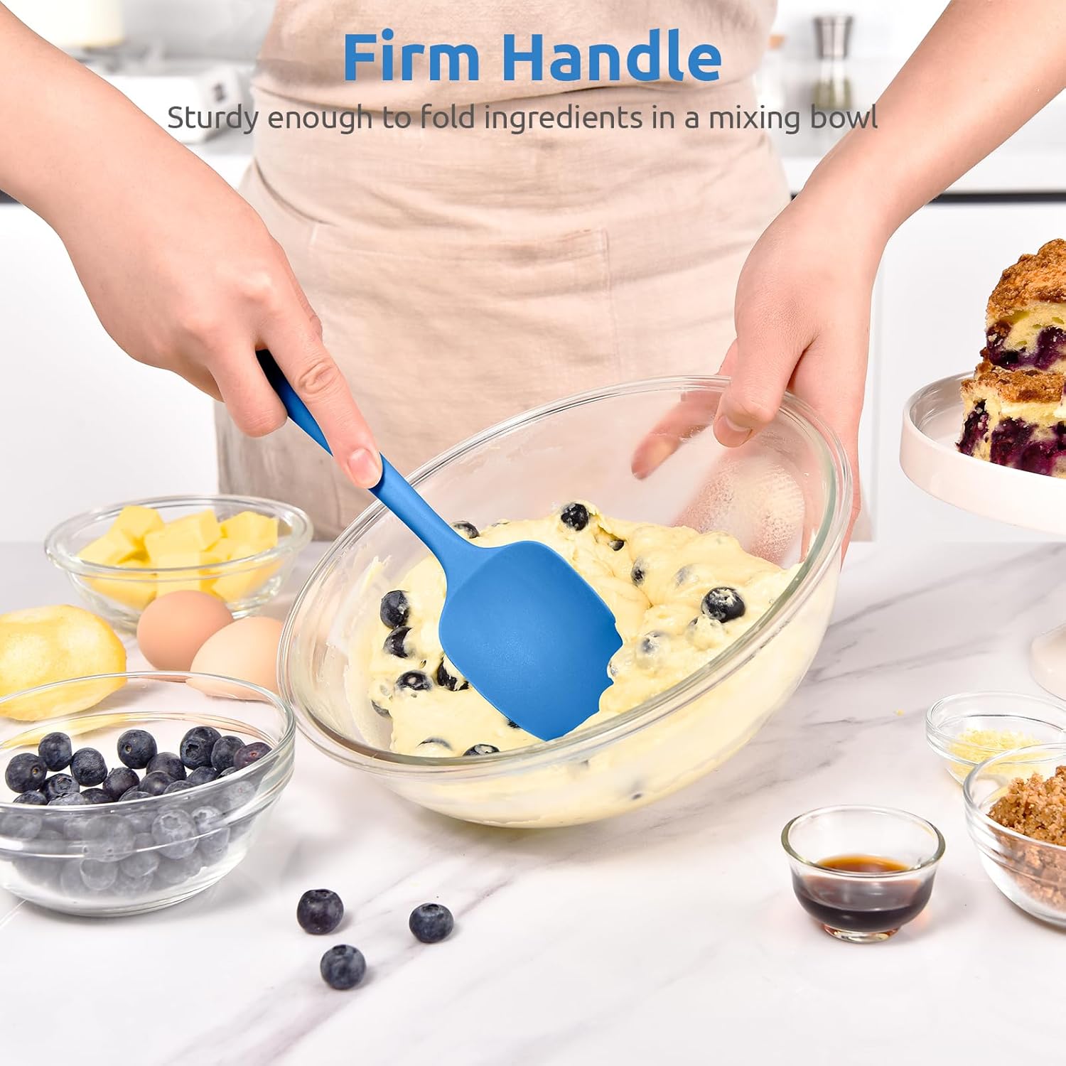 Heat Resistant Silicone Spoon Spatula: U-Taste 600ºF High Heat Flexible 11.38in Silicon Mixing Stirring Cooking Scraping Baking Bowl Scraper Seamless Spreader for Kitchen Nonstick Cookware (Lake Blue)