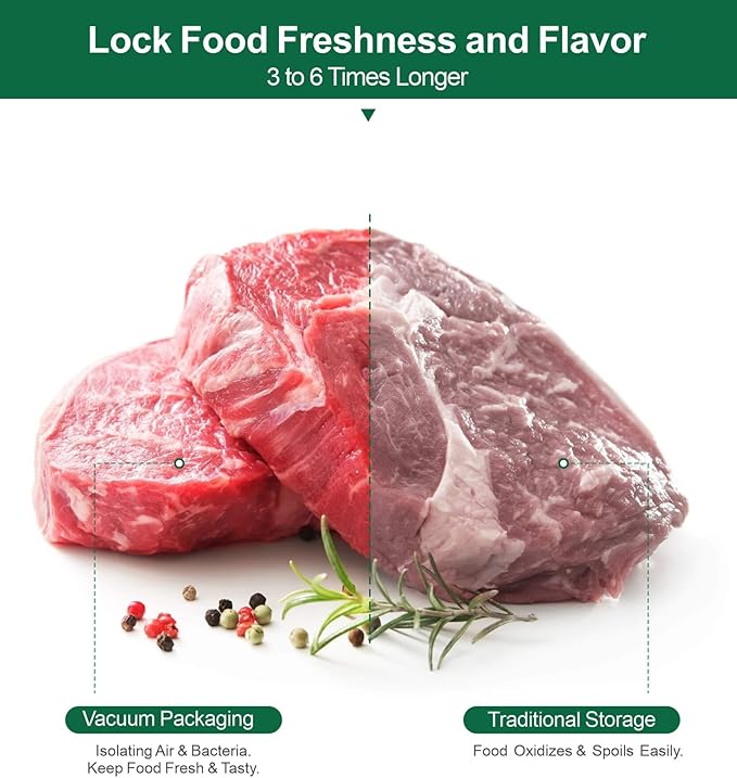 - EXTENDING FRESHNESS: UTILIMATES vacuum sealer rolls 8 inch, with a waffle pattern suction channel, allow air to be squeezed out completely without any dead angles; make food freshness last 3 to 6 times longer; better maintain food flavor and nutrition