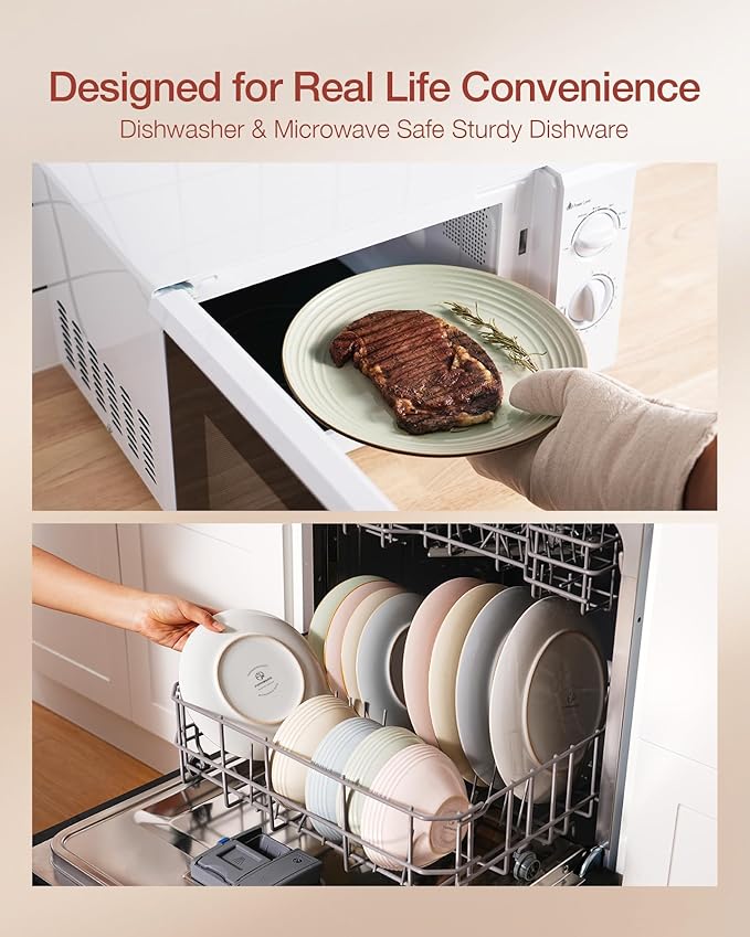 - [Dishwasher and Microwave Safe]: Famiware stoneware dinner set are made of well-crafted stoneware. Each bowl and plate is safe for use in the dishwasher and microwave