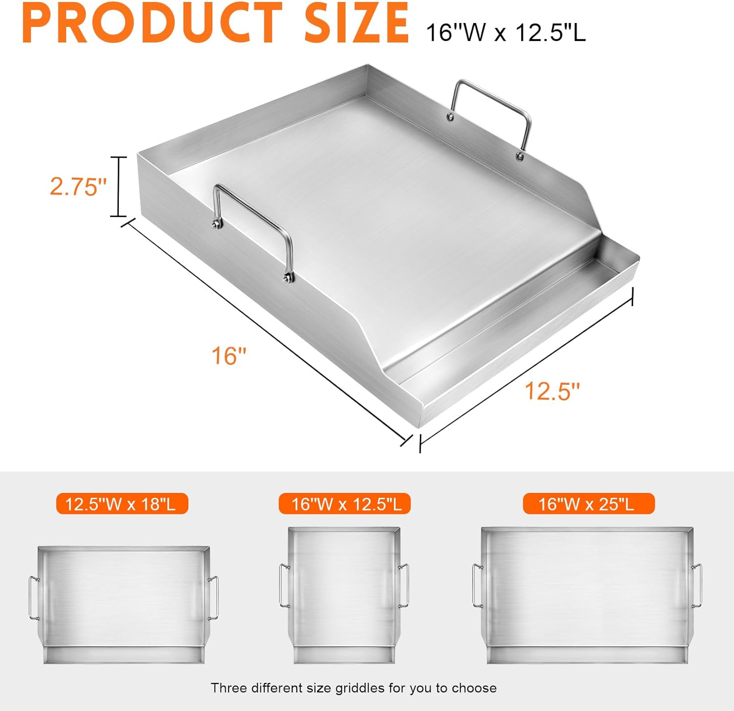 - 【High Quality Stainless Steel Cooking Griddle- Non stick】: The universal flat top griddle pan made of food grade stainless steel. Stainless steel griddle can heat food faster and more evenly, and are easier to clean. You no longer have to worry about stuck-on food particles