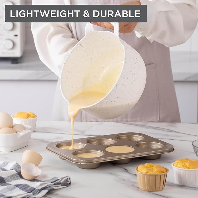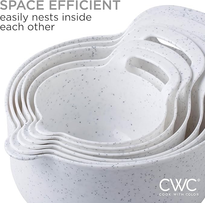 COOK WITH COLOR Nesting Plastic Mixing Bowl Set with Pour Spouts and Handles, Speckled White, 6 Piece Non-Slip