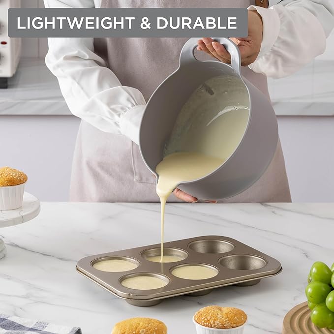 COOK WITH COLOR Nesting Plastic Mixing Bowl Set with Pour Spouts and Handles, Gray, 6 Piece Non-Slip