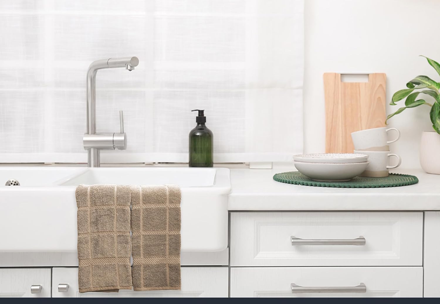 100% Cotton Terry Dish Towels, 4 Pack Plain, 16 x26 Inches, Super Soft and Absorbent Kitchen Towels, Perfect for Kitchen Cleaning and Dish Washing | Tan