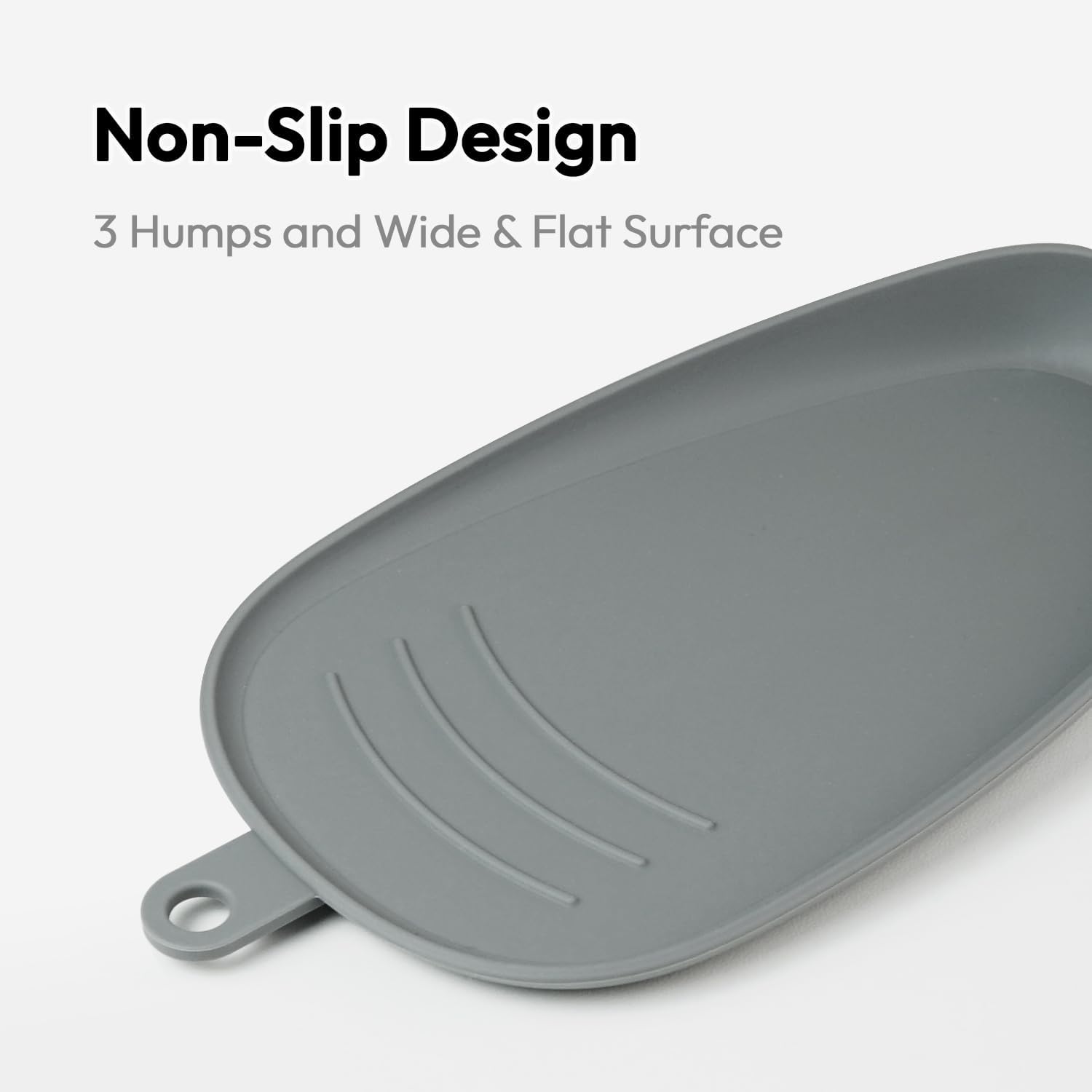 - Non-Slip Design: Silicone Tray for Kitchen Countertop has a large, flat surface for easy placement of kitchen utensils, and is designed with 3 humps and silicone material to prevent slipping. You can place kitchen utensils and even eggs on the Kitchenware Holder without slipping while cooking. Keeps your kitchen clean and organized.
