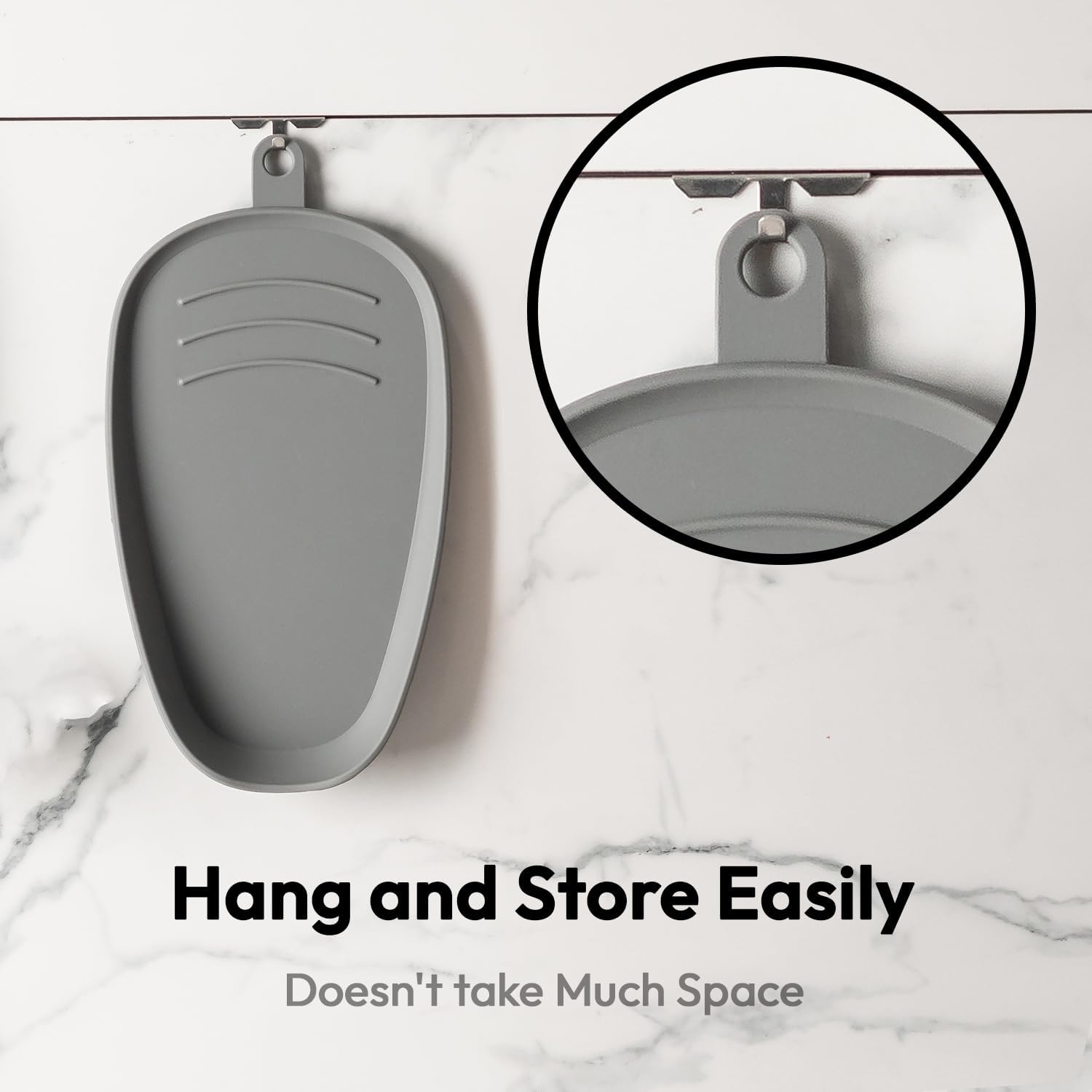 - Safety & Convenience in Use: It's dangerous to hang a ladle over a pot, and hassle to take out a plate to put a spatula down. All you need is our Silicone Utensil Rest Tray which can place your kitchen utensils such as ladle, spatula, tongs, scissors, etc. No longer have to place kitchen utensils on paper towels, plates, or on top of pots.