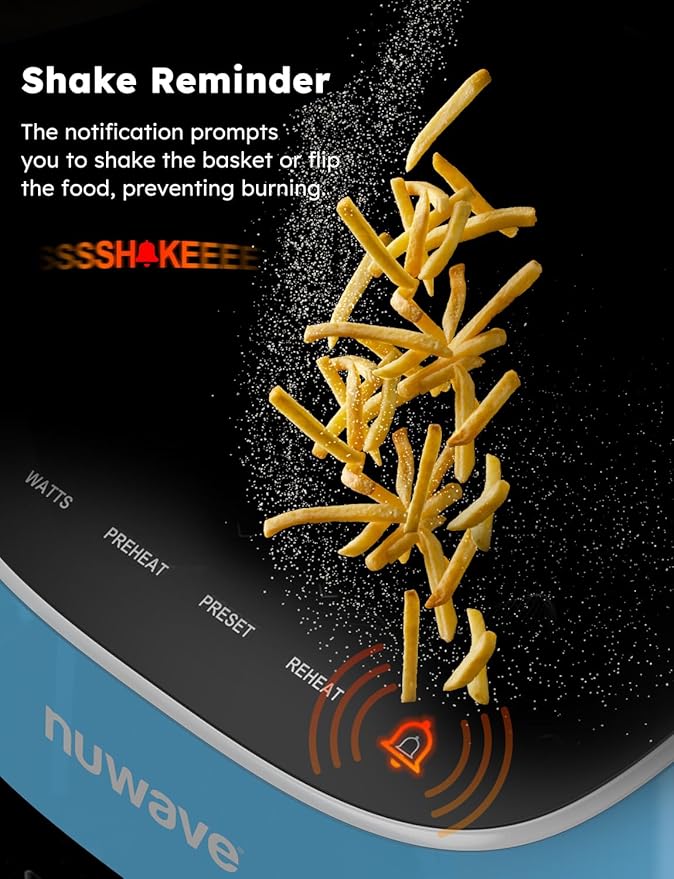 Nuwave Brio Plus 8 Qt Air Fryer, PFAS Free, New & Improved, Digital Touch Screen, Cool White Display, 50°F~400°F in Precise 5°, 5 Cook Functions, 100 Presets & 50 Memory, 3 Wattages 700, 1500, 1800
