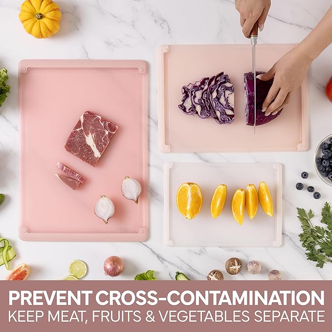 - ADD COLOR AND STYLE - We understand kitchen trends, and our small, medium and large plastic cutting boards in beautiful colors will add that great touch to your kitchen.