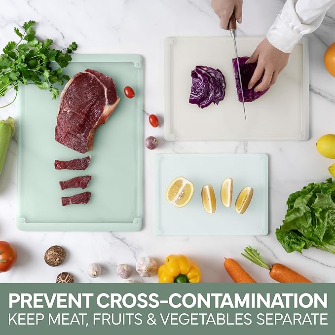 - ADD COLOR AND STYLE - We understand kitchen trends, and our small, medium and large plastic cutting boards in beautiful colors will add that great touch to your kitchen.