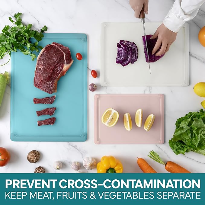 - ADD COLOR AND STYLE - We understand kitchen trends, and our small, medium and large plastic cutting boards in beautiful colors will add that great touch to your kitchen.