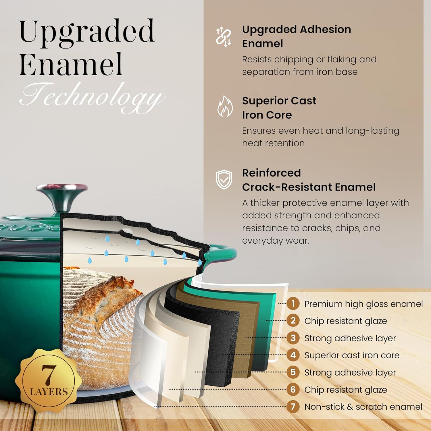 Nuovva Enamelled Cast Iron Dutch Oven Pot with Lid – 6.4 Quart Non Stick Casserole Pot – Heavy Duty & Oven Safe up to 500° F for Bread Baking, Braising, Stews, Roasting – 28cm Dark Green