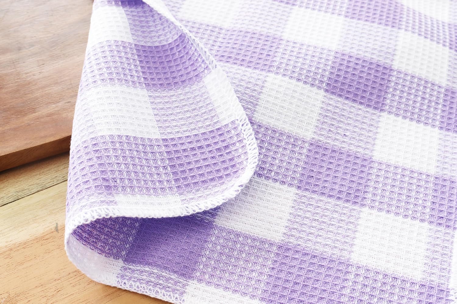 Waffle Weave Plaid Dish Cloths, 100% Cotton - 12 x 12 Inches, Ultra Soft Absorbent Quick Drying Dish Towels Buffalo Check Dish Rags for Kitchen, 6 Pack - Spring Summer - Lavender and White
