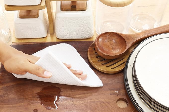 - Experience superior absorbency with our dish rags, featuring a honeycomb check design adorned with a buffalo pattern. They excel in moisture absorption and complement various kitchen aesthetics.