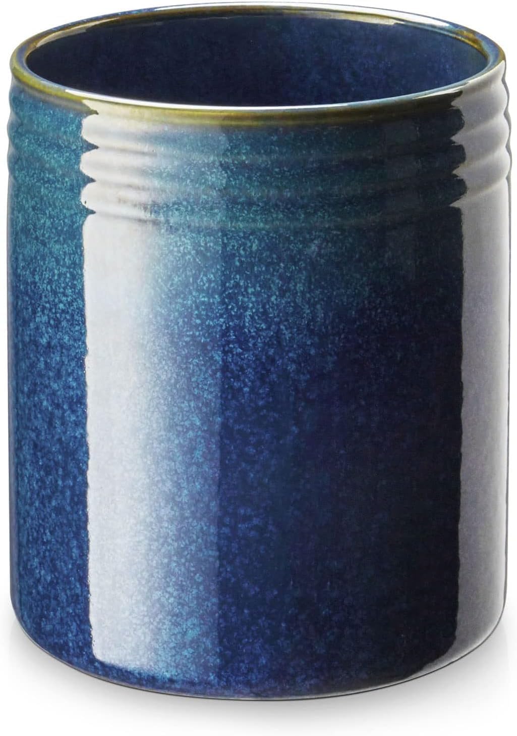 - Wonderful & Elegant Gift. Made of great quality, this utensil holder for countertop is very sturdy, and can be used for kitchen and be used as a planter pot. The hand-make beautiful and elegant relief with brown stripes on the edges, suitable for wedding or housewarming gifts.