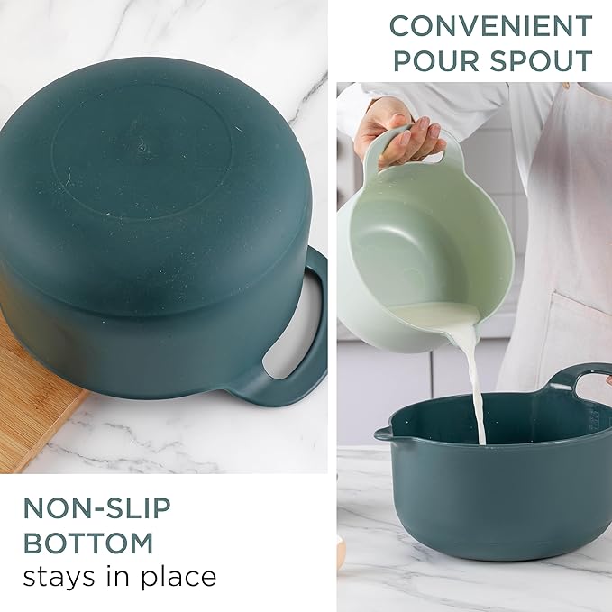 COOK WITH COLOR Nesting Plastic Mixing Bowl Set with Pour Spouts and Handles, Green, 4 Piece Non-Slip