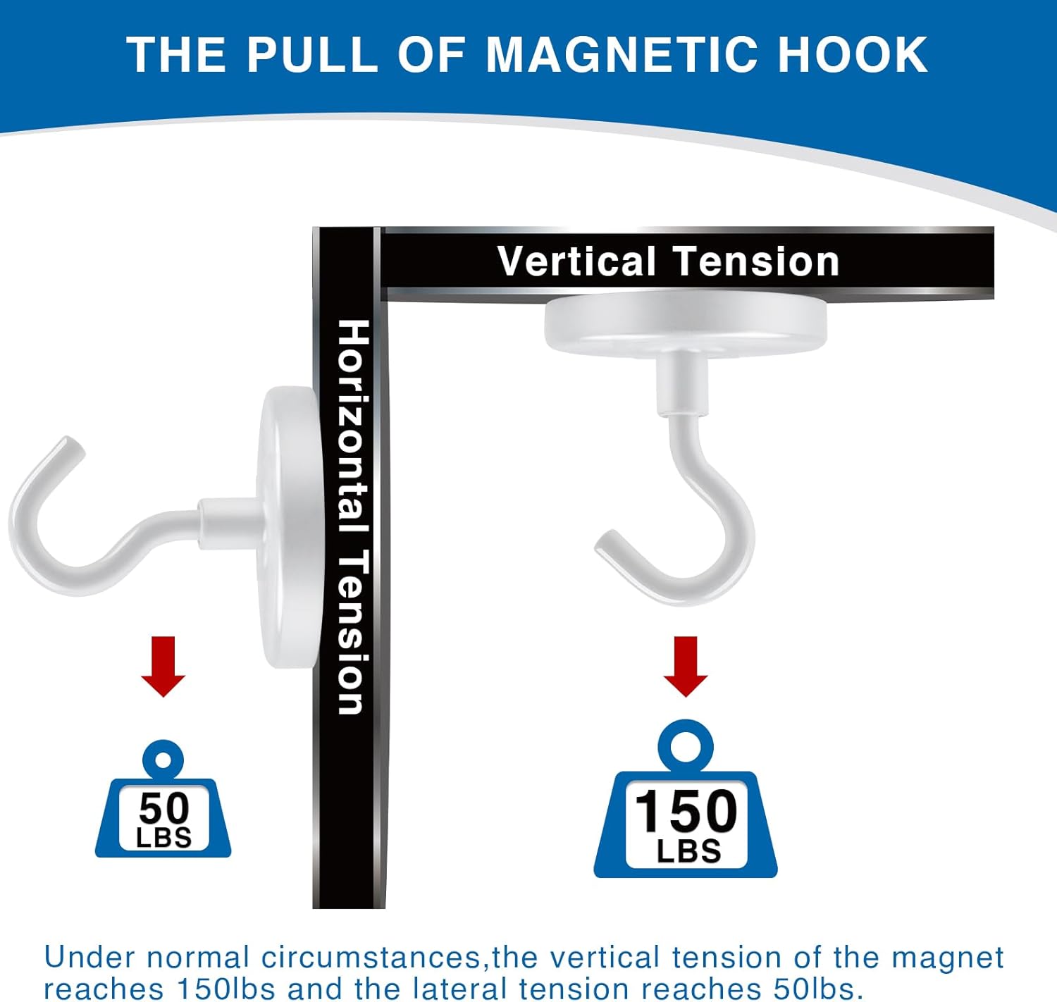- 【MAGNETIC HOOKS】With our magnetic hooks, you can get over 150LBS of pulling force vertically and 50LBS horizontally. These colorful metal magnetic hooks for cruise essentials are very sturdy and perfect for hanging the items you need to make your life easier.