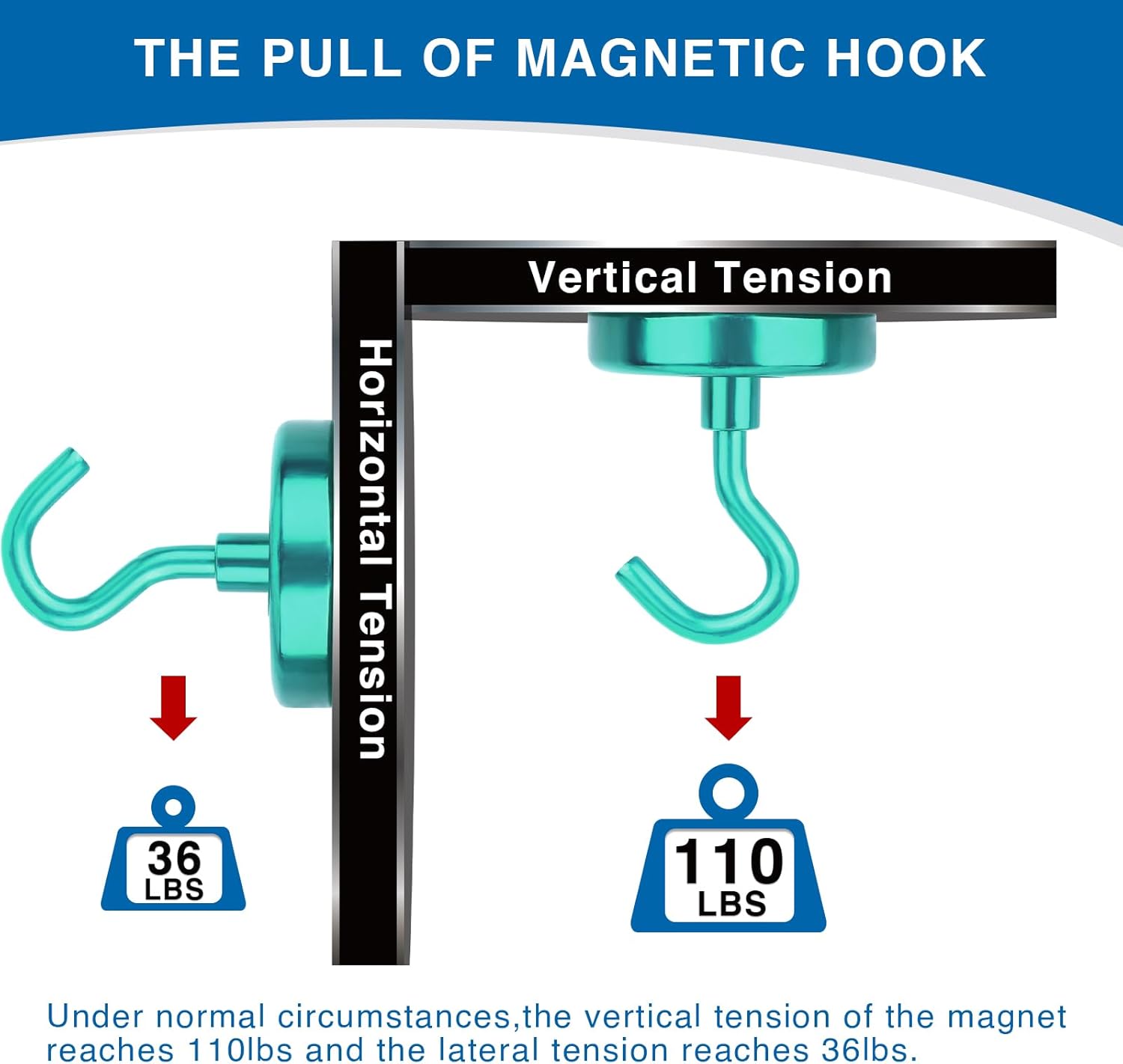 LOVIMAG Magnetic Hooks, 110lbs Capacity, Green Cruise Magnets, Key Holder, Strong Hanging Hooks - Fridge, Grill - 12 Pack