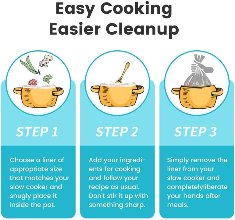 - 【Small Size & Versatile Use】Each cooking bag fits various ingredients and most slow cookers, perfect for family meals or large gatherings, reducing cleanup by allowing multiple dishes in one pot
