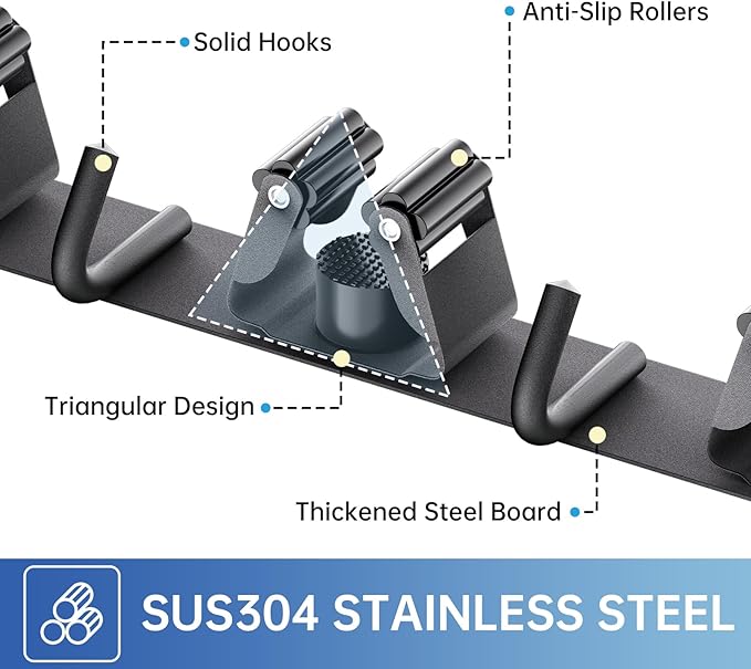 - 🏡【STURDY & BROOM HOLDER】Each broom holder wall mount has 3 racks 4 hooks. Made of sturdy 304 stainless steel, the broom holder is corrosion-resistant, rustproof and waterproof. Compared with the plastic broom rack, it is more stronger and has a longer service life.