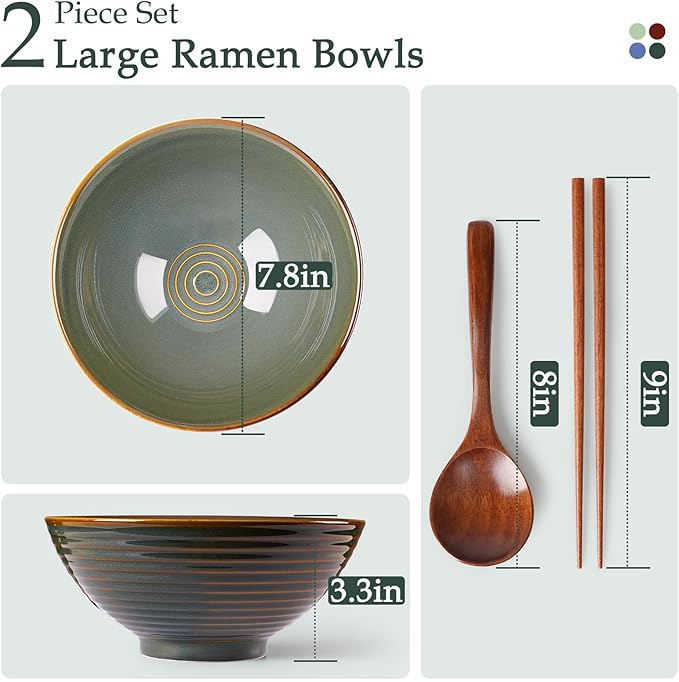 - Ideal Gift Choice: Two ramen bowls are accompanied by 2 spoons and two pairs of chopsticks, which are made of Machilus. Itβs a lovely gift for housewarming, wedding party, birthdays, holidays, or anniversaries or for anyone who enjoys ramen.