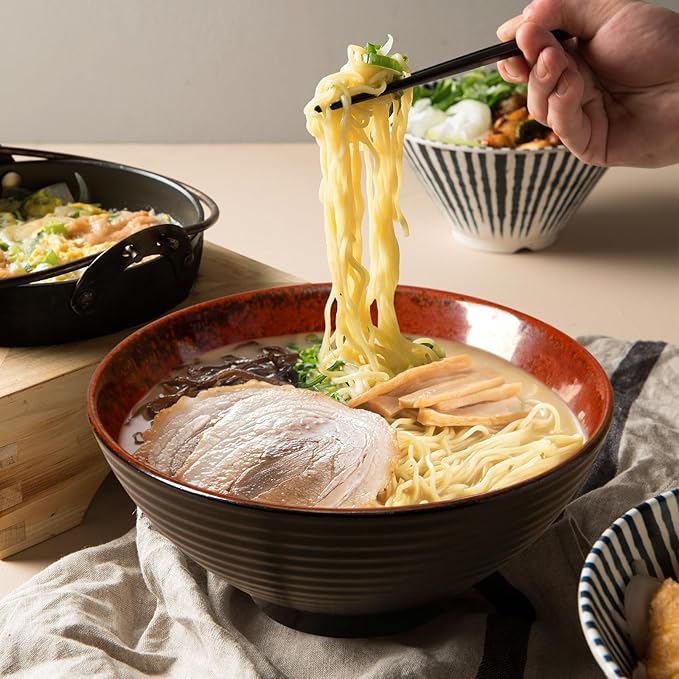 - Durable & Safe: These ramen bowls are made of premium ceramic clay and glaze, which is free of lead and cadmium. Non-porous surface does not absorb food odors, stains or any impurities. Never worry about toxic chemicals leaching into your food. Much healthier and safer than melamine.