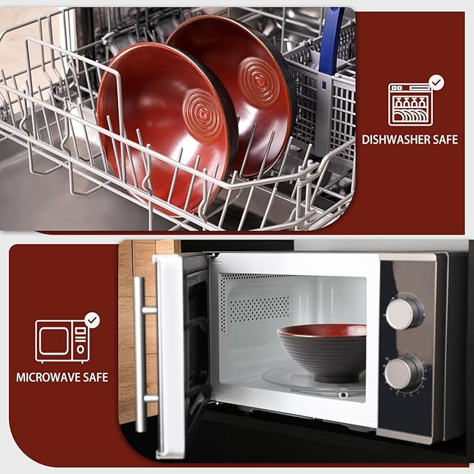 - Right Size for Noodles: With a diameter of 8 inches and a capacity of 40 oz. The soup bowl ensures ramen toppings and delicious soup sit securely inside without spilling. These noodle bowls are microwave, oven, freezer and dishwasher safe.