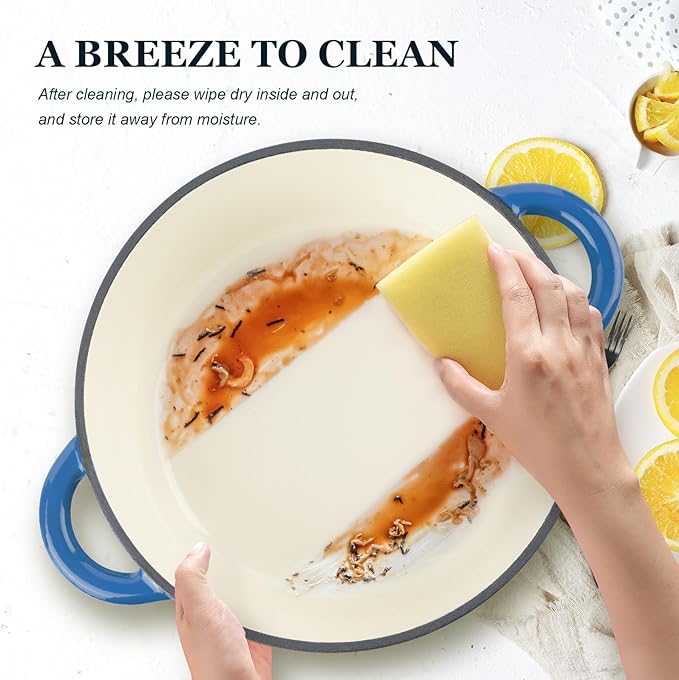 - Effortless Cleaning & Safety First: The flat and smooth enamel surface not only delivers a superior cooking experience but also makes cleaning a breeze. Easily remove food residues with a gentle wipe from a soft sponge or cloth. Additionally, we've included a cotton heat-resistant cap, ensuring a comfortable grip and safeguarding you from burns when handling the pot's handles and lid.