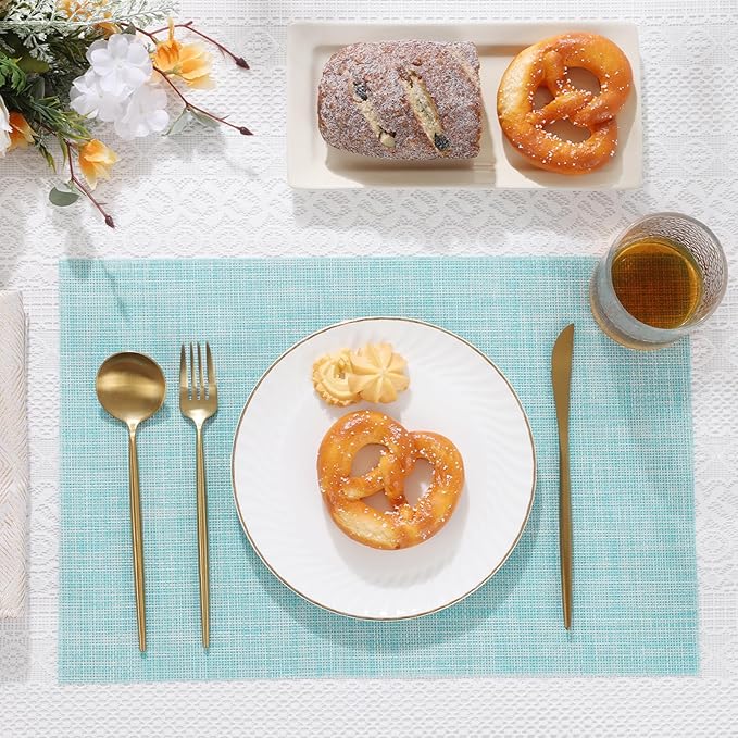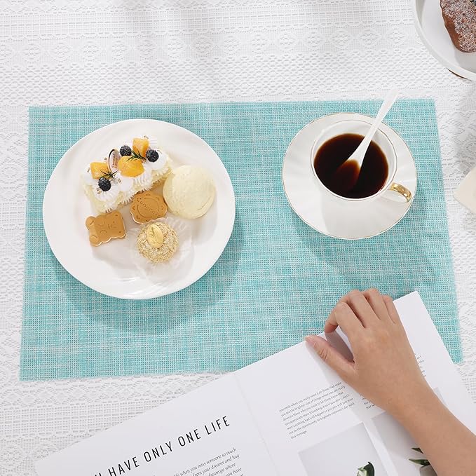 SHACOS Placemats Set of 6 Woven Vinyl Place Mats Wipeable Heat Resistant Washable Table Mats Indoor Outdoor, Blue