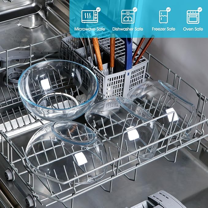 - 🎀Everyday & Entertaining Essential👛: 4-pack set offers flexibility: use one for prep and the others for serving, or stack to save cabinet space. Transparent glass adds elegance to casual meals and formal dining settings. Easy to clean and stain-resistant, maintaining clarity even after heavy use.Literally the appropriate present to your family or friends on Mother’s Day, Christmas, Birthday, Wedding, Housewarming parties and other social occasions.