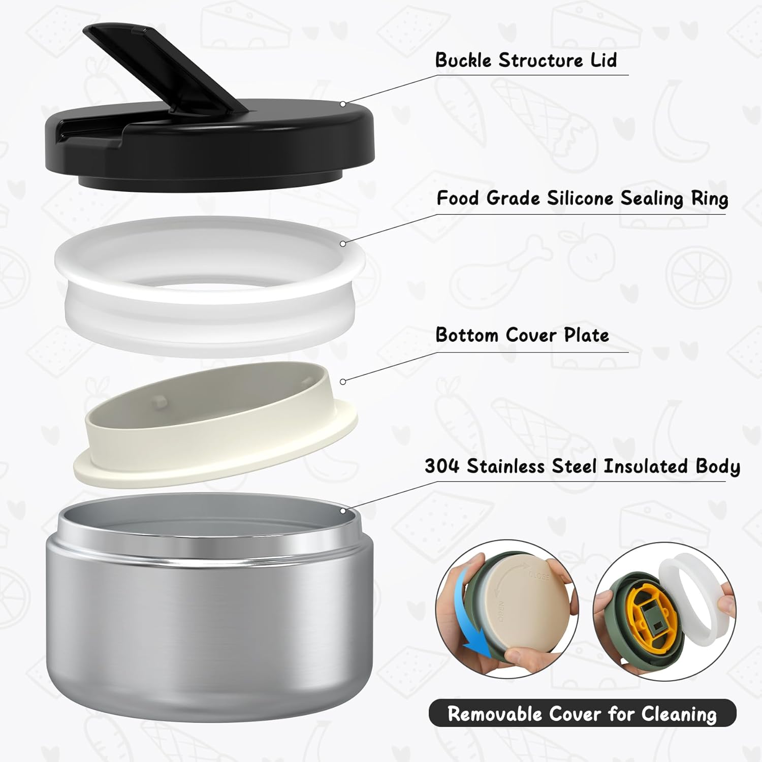 - Kids Insulated Food Jar: The 8 oz kids' insulated thermo food jar is constructed and BPA-free 18/8 stainless steel, ensuring the highest level of safety to protect kids' health. The lid, equipped with a sealing ring, ensures 100% leak-proof functionality. With a 8-ounce capacity, it's perfect for storing kids' foods such as snacks, fruit, yogurt, noodles, soup, and more.