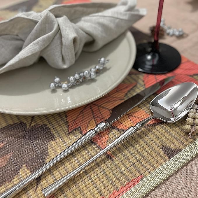 ANDSTAR Set of 8Pcs Bamboo Placemats 17.7X11.8Inch Sushi Rolling Mat Japanese Style Bamboo Mat Place Mats Washable Heat Resistant Table Mats for Dinner Dining Table (Maple Leaves)