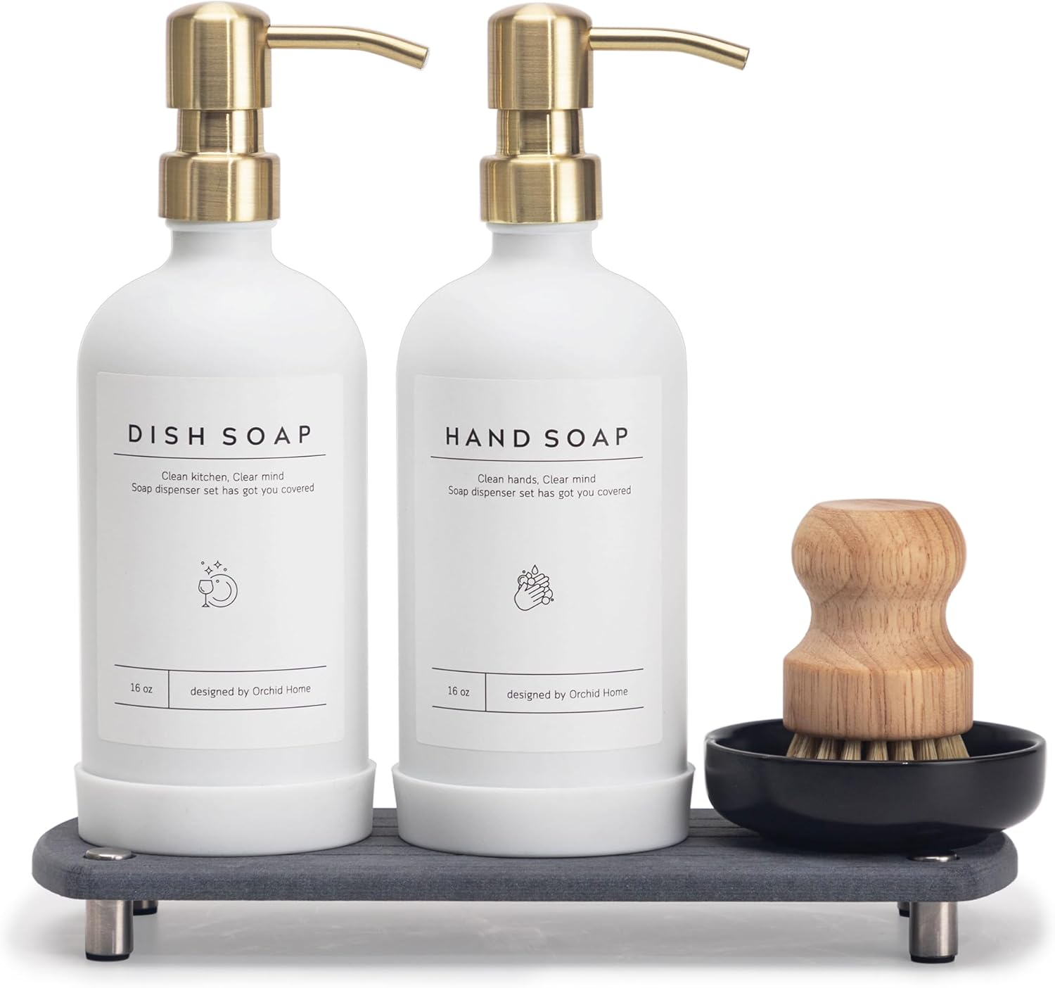 ![[Luxury] Kitchen Soap Dispenser Set - 16OZ White Glass Bottle, Stainless Steel Pump, Instant Dry Tray, Waterproof Labels, Non-Slip Silicone Pad, and Dish Brush | Upgrade for Your Kitchen and Bathroom](http://neoneo-chef.com/cdn/shop/files/616Tlg57gDL._AC.jpg?v=1765966535&width=1445)