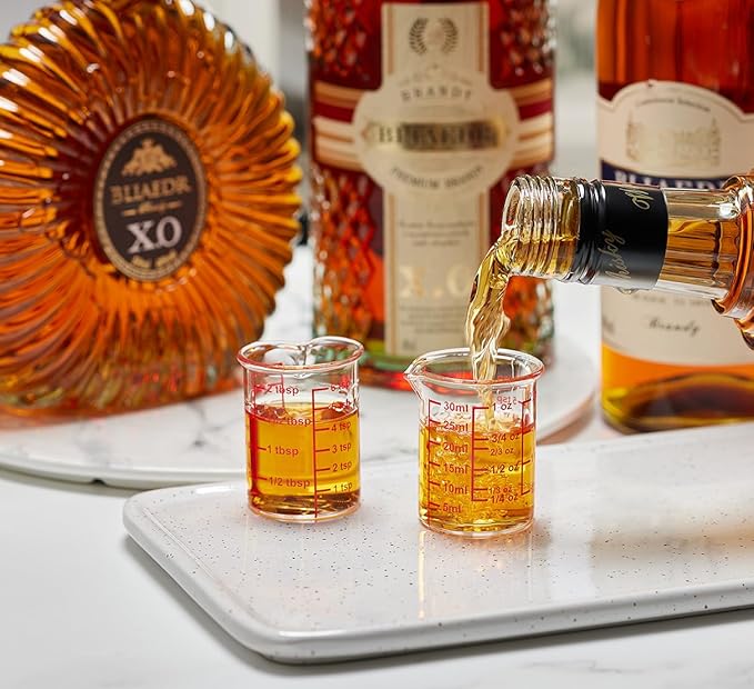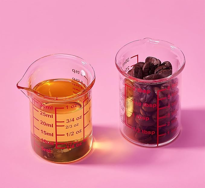 - Clear, Multi-Scale Markings – The easy-to-read, high-temperature resistant labels feature measurements in ounces, milliliters, teaspoons, and tablespoons. Whether you're using it as a mini measuring cup for liquid medicine or for precise ingredient measurements, the markings won’t fade, ensuring reliability for all your kitchen, beverage, or chemical measuring tasks