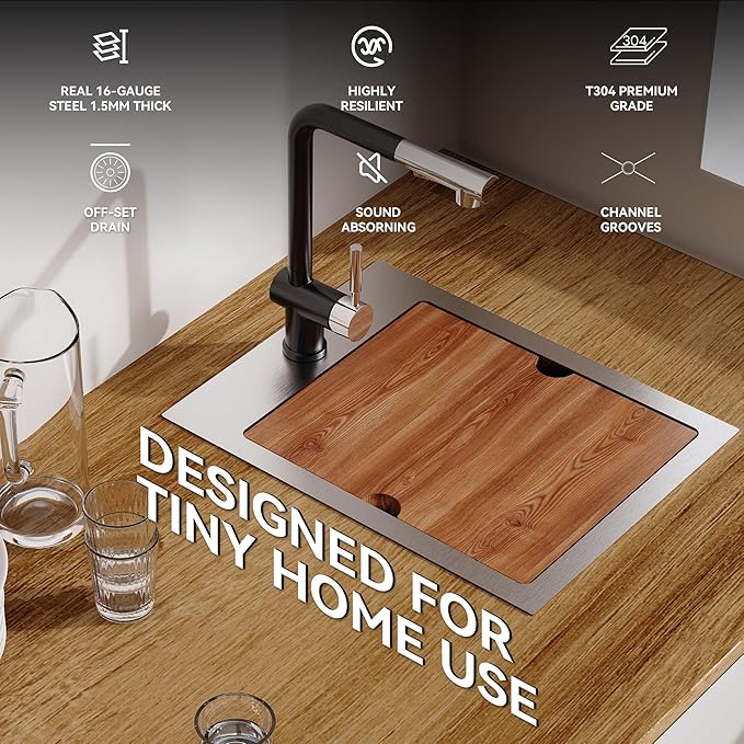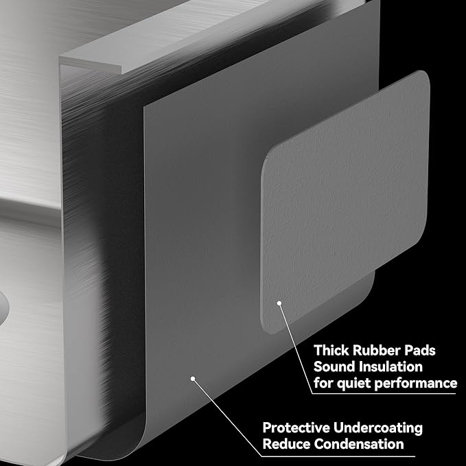 - [SOUND PROOF COATING] To create a quieter kitchen environmen ,TORVA RV sink is with heavy-duty thick rubber padding which minimizes noise and to prevent moisture accumulation