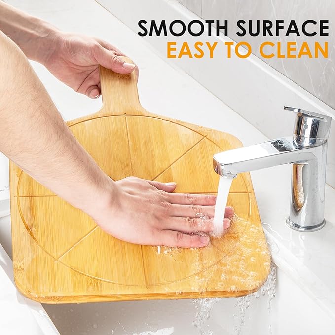 - Happy Cook Time - Perfect for organizing everything during making Pizza.pizza peels are made from natural bamboo.make cleaning easy to keep your kitchen clean. Arrange all parts at table corner, save your kitchen space.