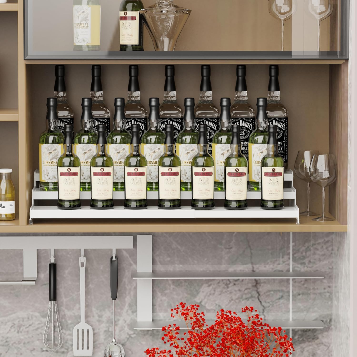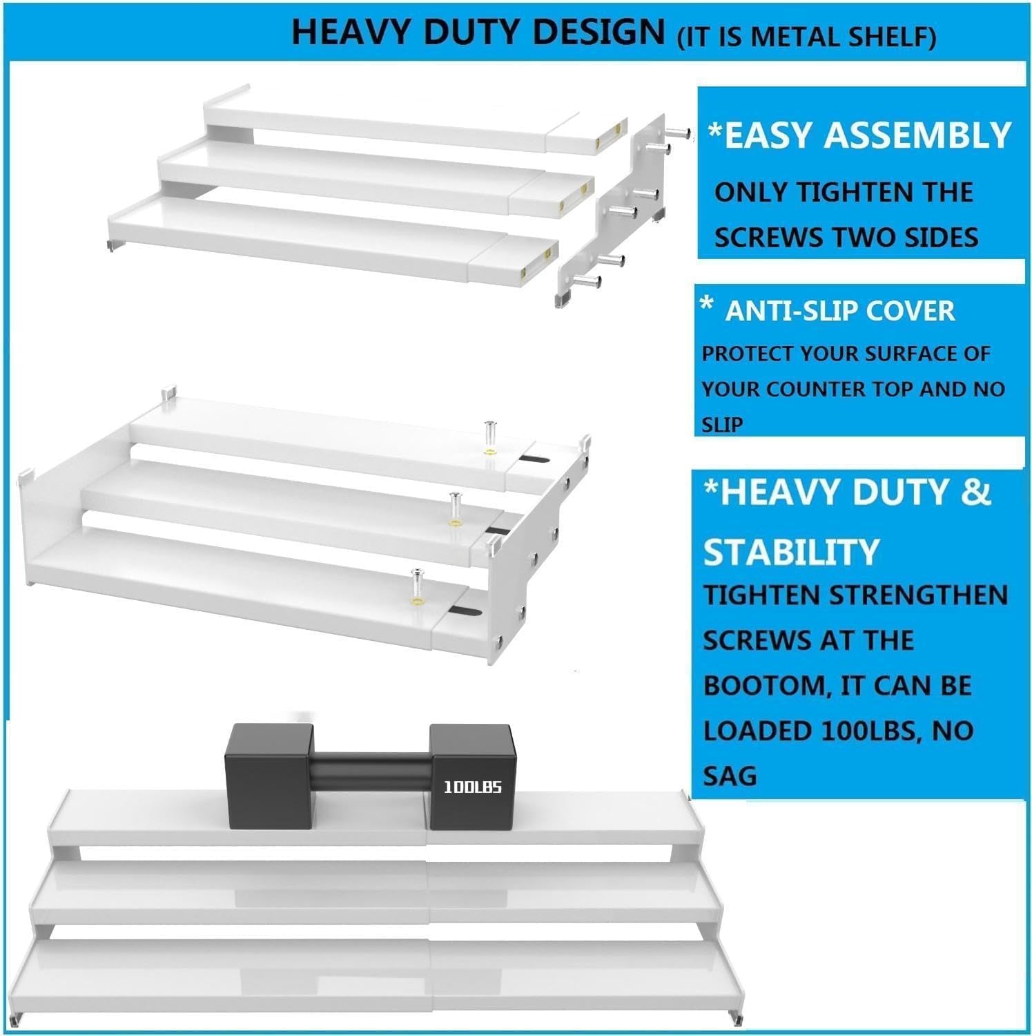 Expandable Spice Rack Storage organizer with 3-Tier step shelf cabinet,seasoning racks organizion.Great for Kitchen countertop shelves,Pantry and more(1Pack/White)