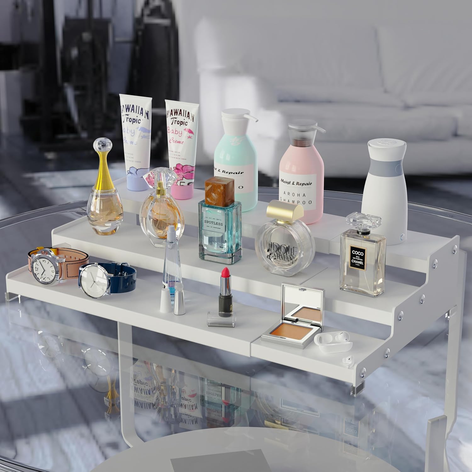 - ā[Organize and Save your space]Stepped design to provide you with both space and visibility.you can get what you need quickly and clearly.Create extra space-use it throughout the home; Save for storing and organizing nail polish,perfume, lotions,body sprays,makeup,lipstick and other cosmetics in the bathroom and your other kitchen cabinets.